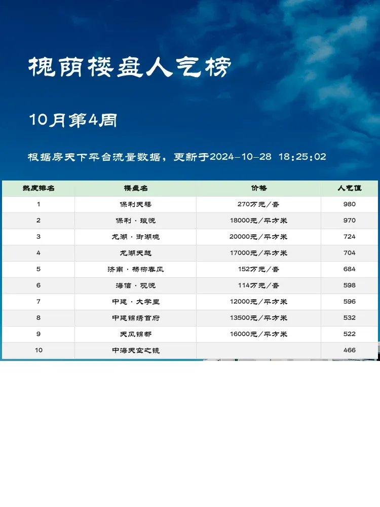 每个楼盘都有其独特的优势,购房者根据自身需求选择合适的楼盘,才能获得理想的居住体验。希望这份榜单能为您提供有效的参考信息。✨