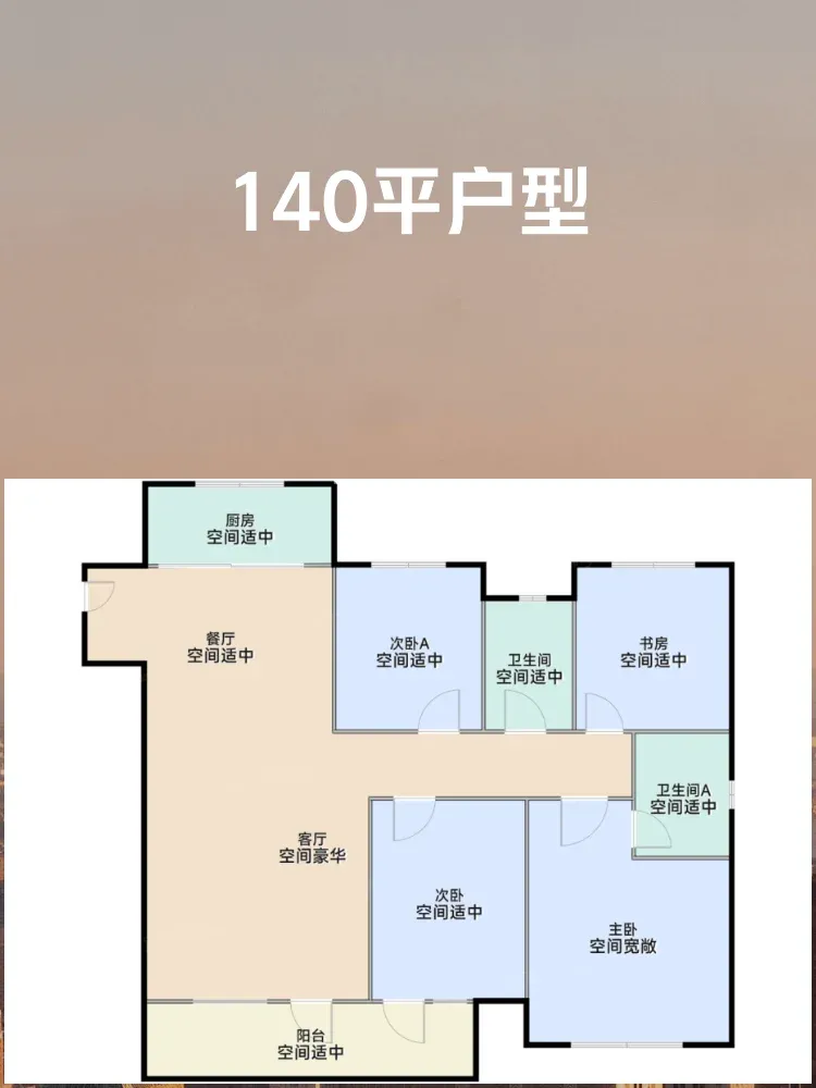 140平户型:4室2厅2卫,建筑面积140㎡