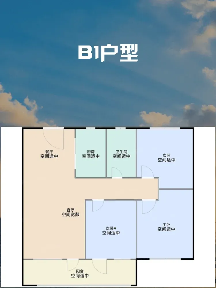 B1户型:3室2厅1卫,建筑面积105㎡