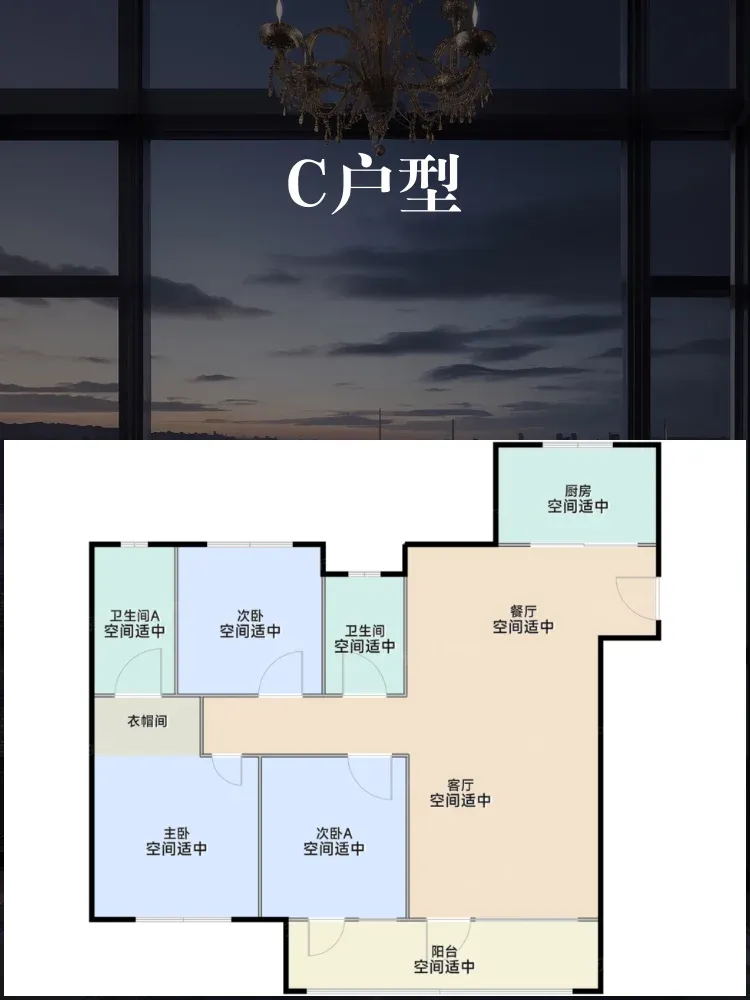 C户型:3室2厅2卫,建筑面积120㎡