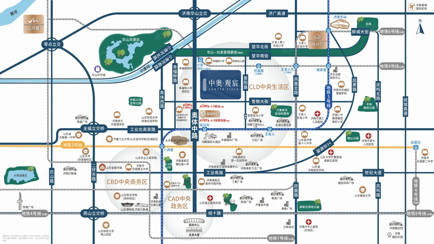 1. 项目位于济南市历城区奥体中路与鲍华东路交汇处,地理位置优越,交通便利,生活配套齐全。