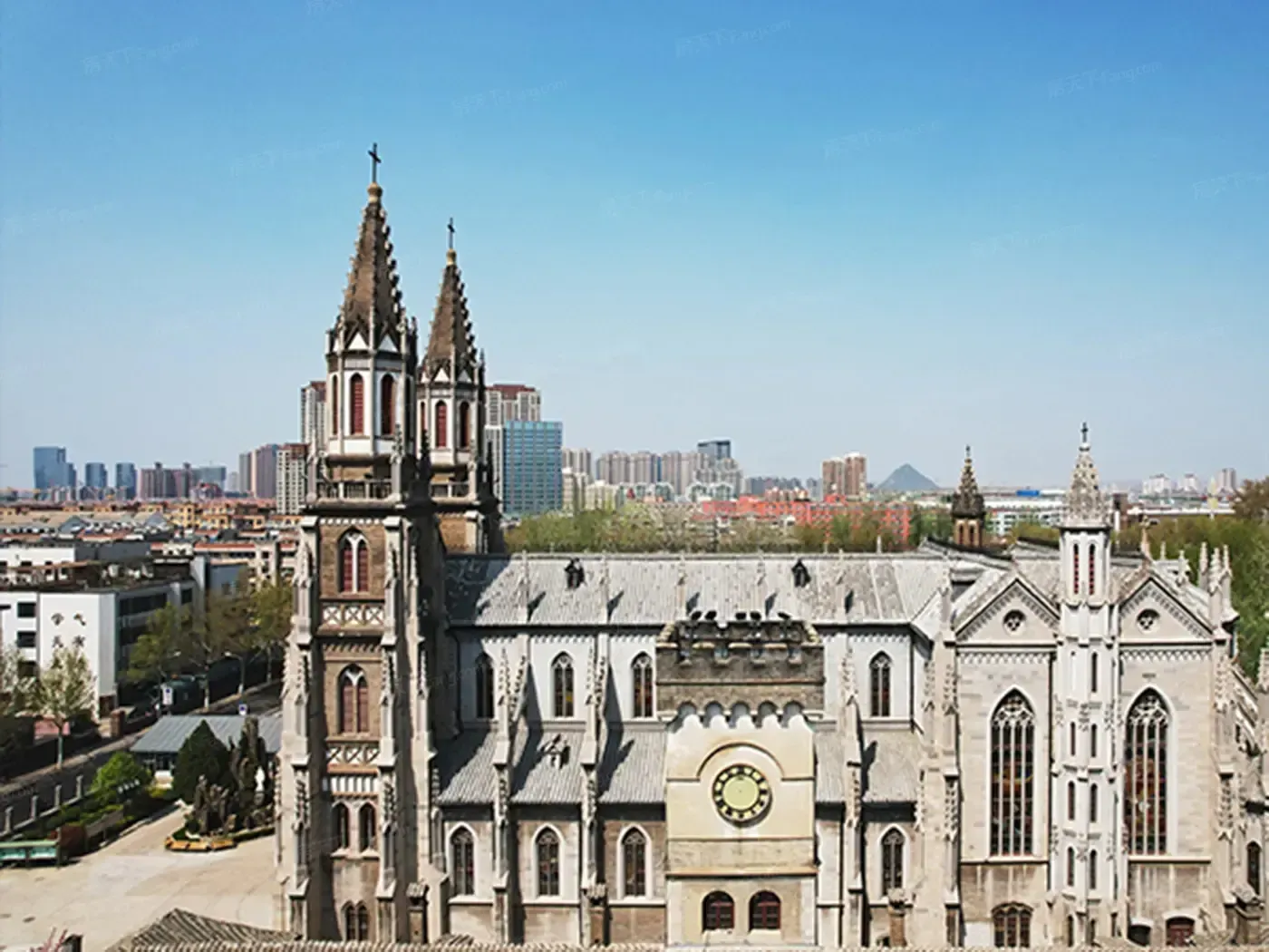 带着无人机飞越洪楼片区时,镜头捕捉到魔幻一幕:1904年建成的天主教堂尖顶,与高铁·熙悦府现代感十足的玻璃幕墙同框,仿佛时空折叠的切片。这或许就是城市更新的魅力——让历史文脉与现**活共振。