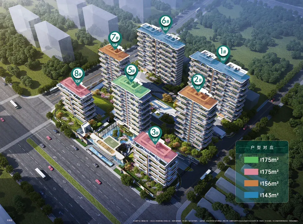 取帝王“太师椅”吉局筑家,北高南低藏风聚气纳福泽;建面143-175㎡阔尺户型,四室/三室适配全家庭需求,双卫设计更显从容;户户私享诗意露台,赏花观景皆成趣,现代美学建筑衬出生活质感,一宅藏尽福运与舒居。