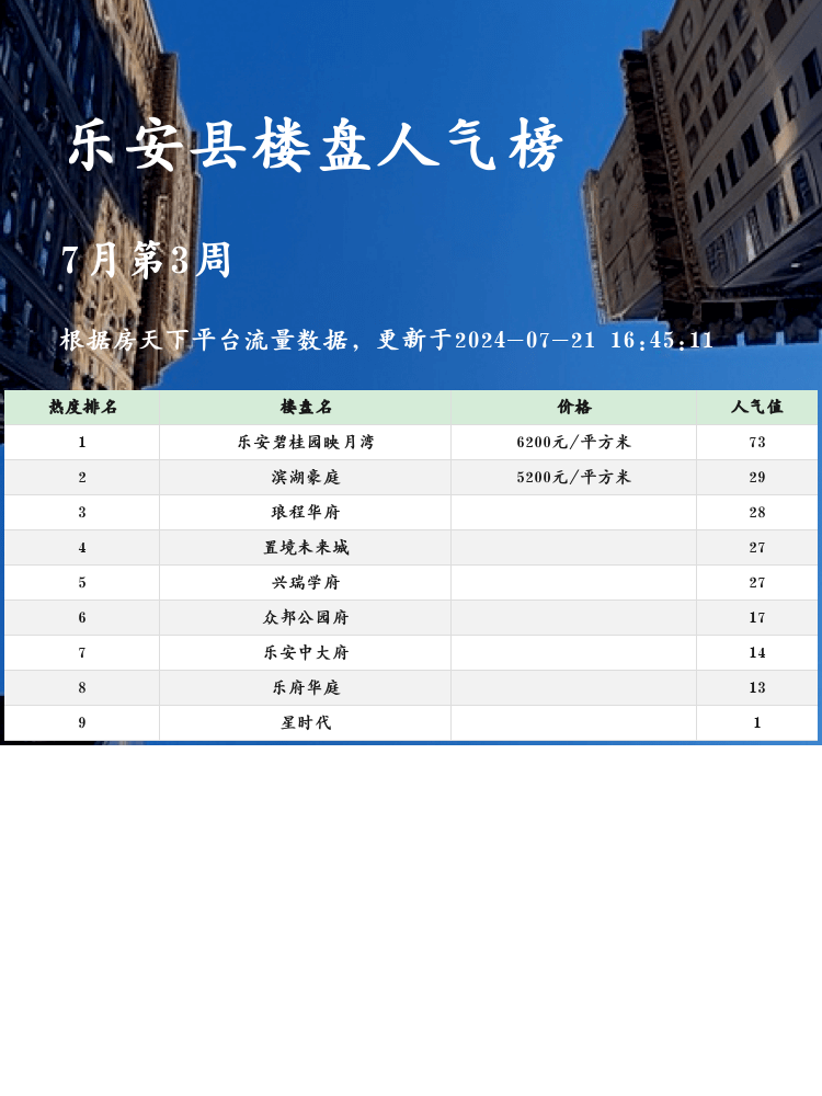 👋各位购房者,看这里!了解人气楼盘榜单的重要性😎,是因为当前市场上好房源多,但找到适合自己的真心不易。抢手好盘不仅要看价格、地段,还得综合考虑配套设施✨。今天带来的是乐安县的人气楼盘榜单,助你选房不踩坑!