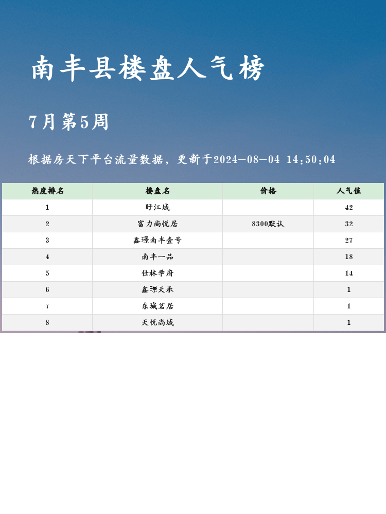 以上就是南丰县人气楼盘榜单的前三名,大家可以根据自己的需求进行选择哦!赶紧行动起来,找到属于自己的美好家园吧!🏡✨