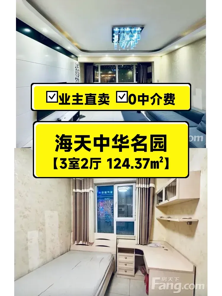 标题:急售!自家海天中华名园124平大三房,南北通透仅62万💥