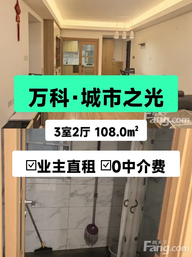 终于决定把自家在**万科·城市之光**的房子出租啦!🏠 这套房是我们一家人住了好久的,108㎡三室两厅,精装修保养得超好,现在1900元/月就能整租(含车位2100元/月),直接和房东我谈,**中介费全免**!
