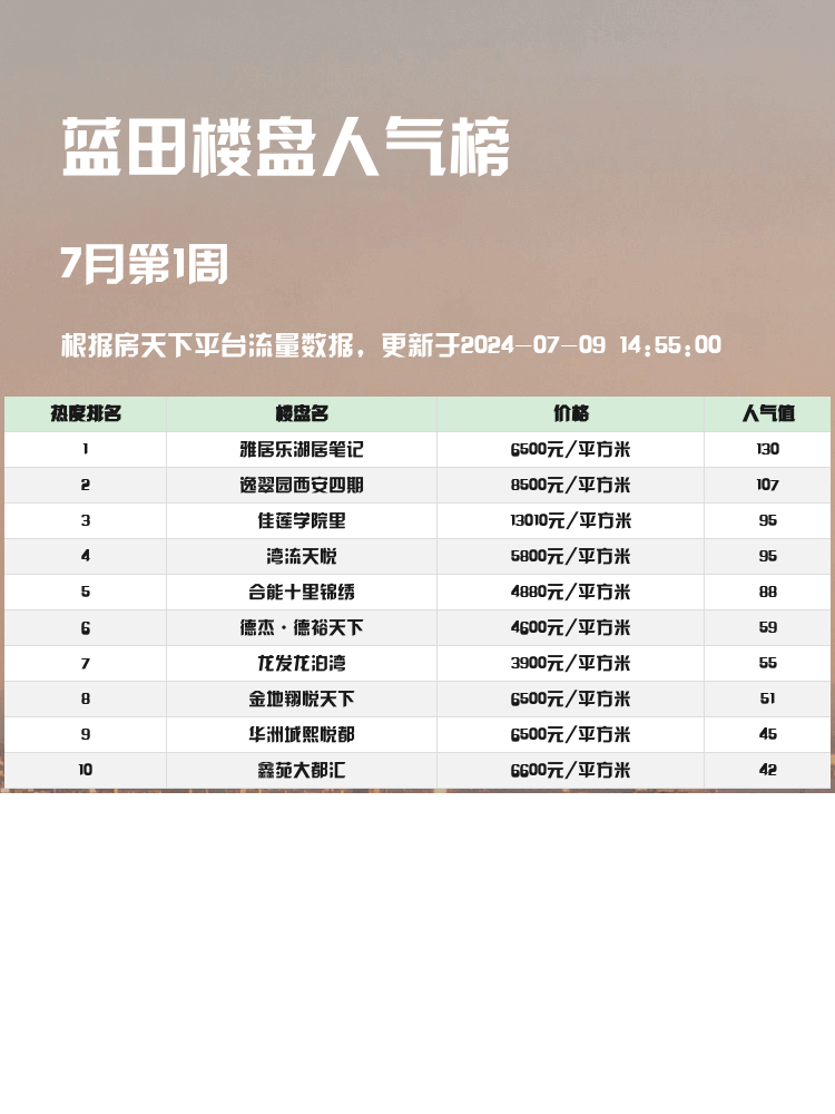 在买房决策中,关注人气楼盘榜单非常重要哦!🏙️市场瞬息万变,选对楼盘不仅能保值增值,还能满足生活需求。今天为大家整理了蓝田区域的人气楼盘榜单🔥,一起来看看哪个楼盘最适合你吧!
