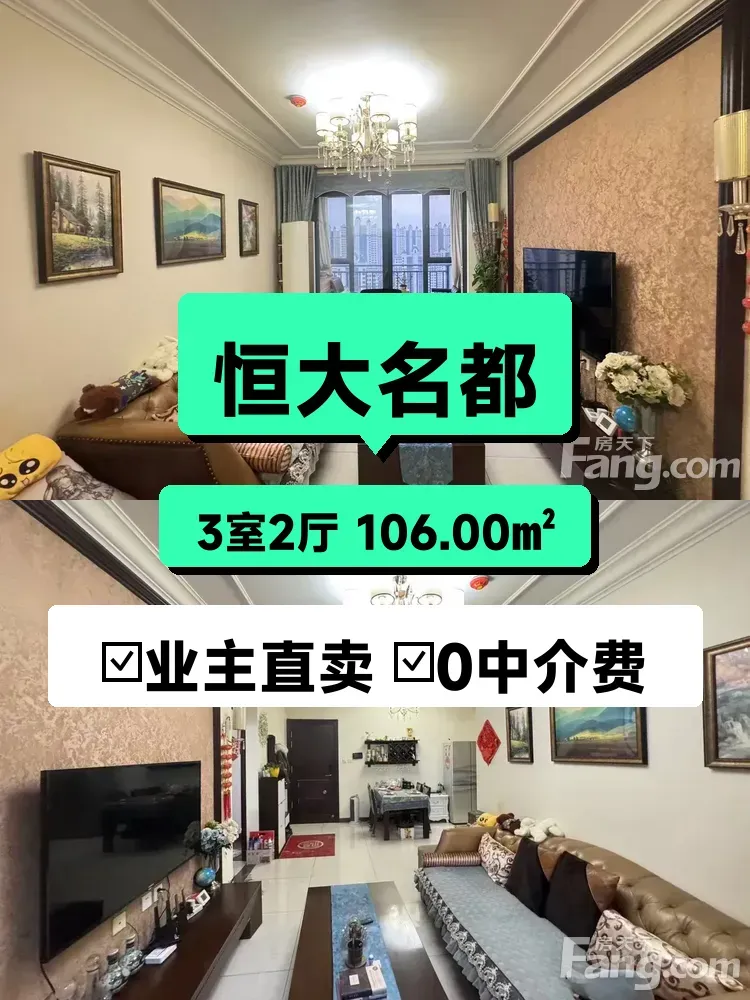 标题:自家恒大名都106平三居急售!高楼层采光无敌🌞