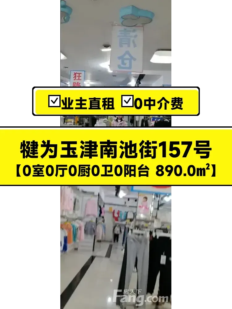 姐妹们看过来!✨ 这套890㎡的临街旺铺是自家产业,地段好到跺脚!位于乐山犍为玉津镇南池街157号,整栋1-4层都是我的,可整租,分租,南向精装修,中央空调+扶梯全配齐,做生意直接拎包开张!