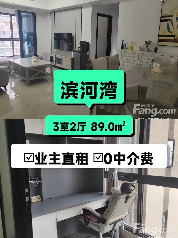 **标题**:自家南向三居室出租🌿滨河湾19楼俯瞰城景,1800/月押一付三