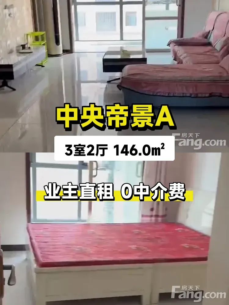 标题:自家146平大三居出租!中央帝景A南向阳光房🌞