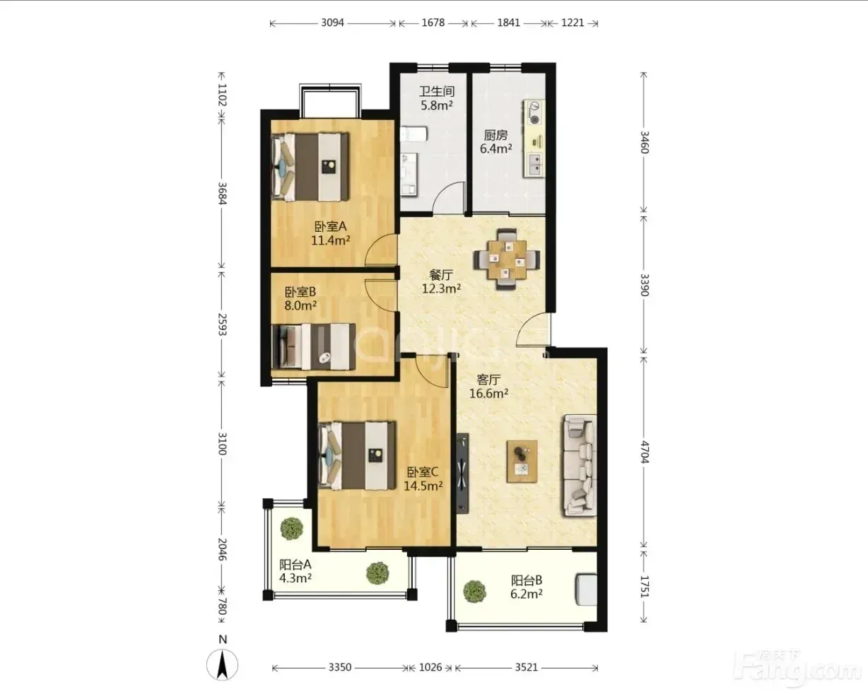 南北通透,边户前排无遮挡。客厅和主卧双L型落地阳台,采光超好。