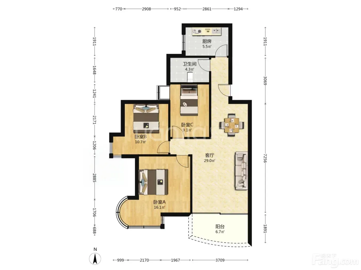 三个卧室都朝南,主卧还带个大飘窗,我女儿超喜欢在那里看书写作业📚 客厅连着阳台,晾晒衣服特别方便。厨房是标准的L型设计,我自己加装了品牌橱柜,做饭特别顺手👩🍳