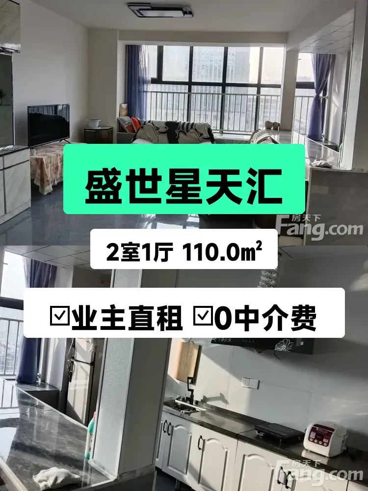 标题:自家盛世星天汇电梯房出租✨两居室东西通透1200/月