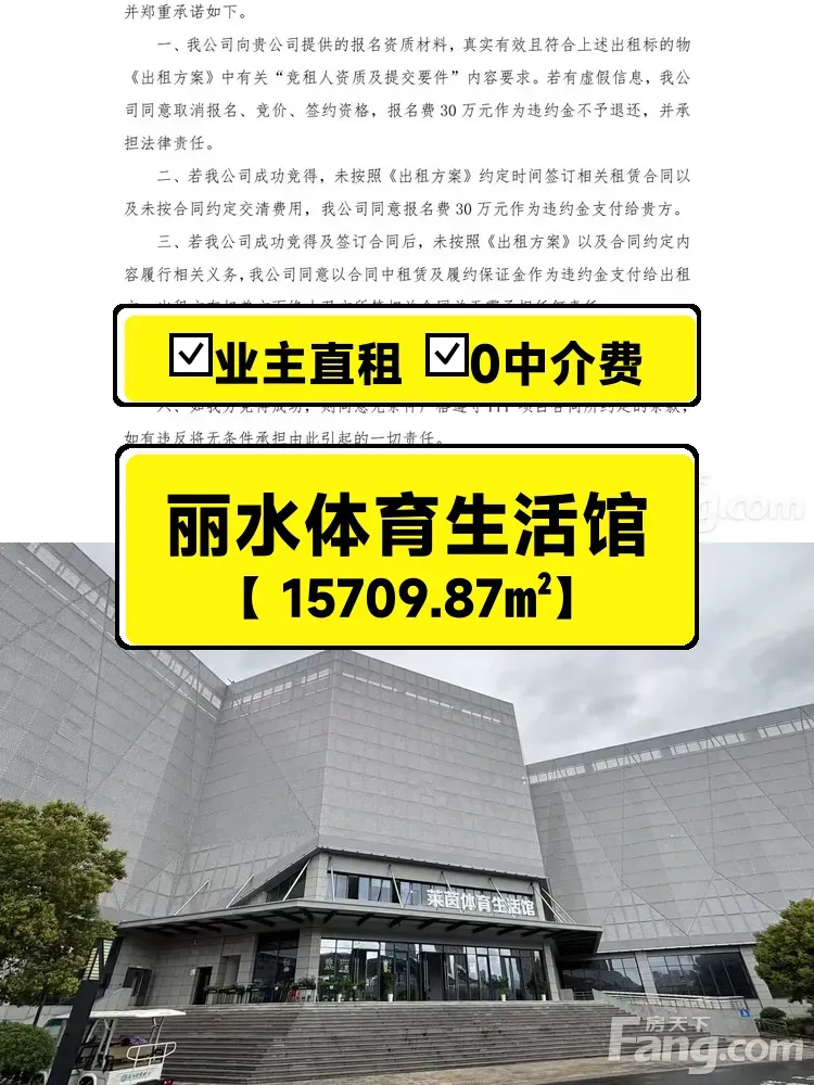 标题:自家丽水超大体育商铺招租!15709㎡黄金地段等你来🔥