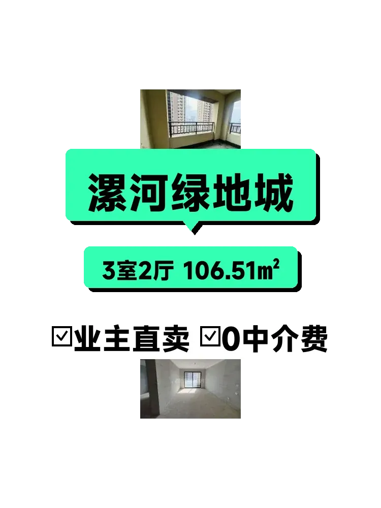 标题:急售!自家漯河绿地城106平三居室🏠南北通透新房