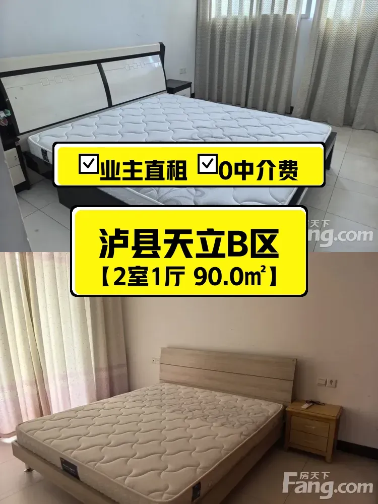 姐妹们!终于决定把自家这套小窝租出去啦~✨ 房子在泸县天立B区,6楼不算高,爬楼就当锻炼身体啦!90平的两室一厅,东西朝向,虽然简装但超级干净清爽,自己家住的时候连墙角都擦得锃亮呢~
