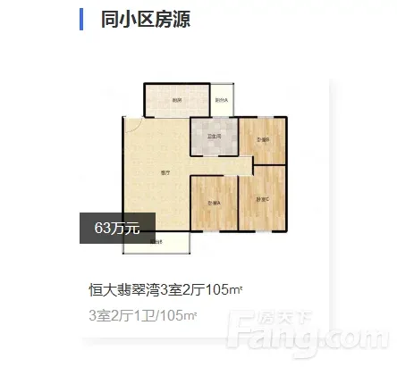 标题:自家南向三居急售!恒大城105平仅50万💰