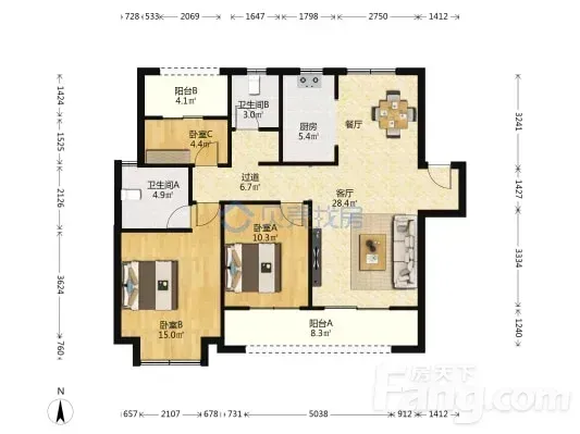 • 三室两厅的格局超级实用,主卧能放下2米大床