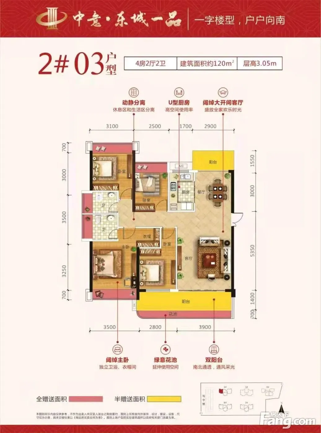 户型是4室2厅2卫,南北朝向