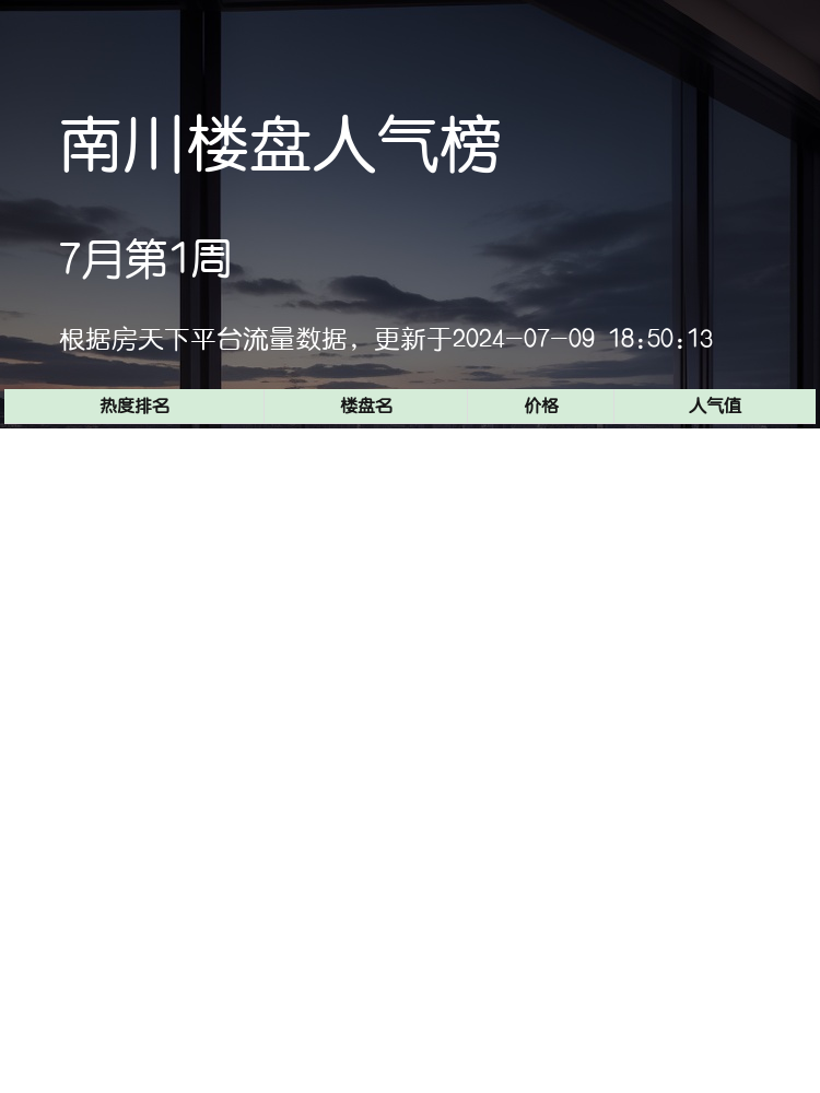 以上就是南川人气楼盘的前三名推荐🏆,希望对大家的购房决策有所帮助!记得关注我,了解更多楼盘资讯哦~❤️