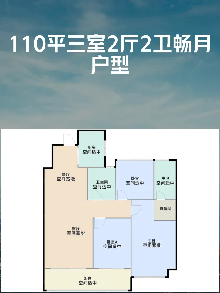 110平三室2厅2卫的畅月户型: