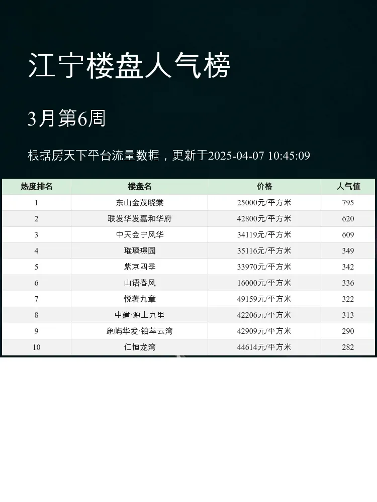 买房选对区域和楼盘太重要啦!🏡 这份江宁人气楼盘榜单,帮你快速锁定高性价比好房~当前市场下,交通便利、配套完善、总价适中的楼盘更受青睐,这份榜单正是基于这些核心指标评选出来的哦✨