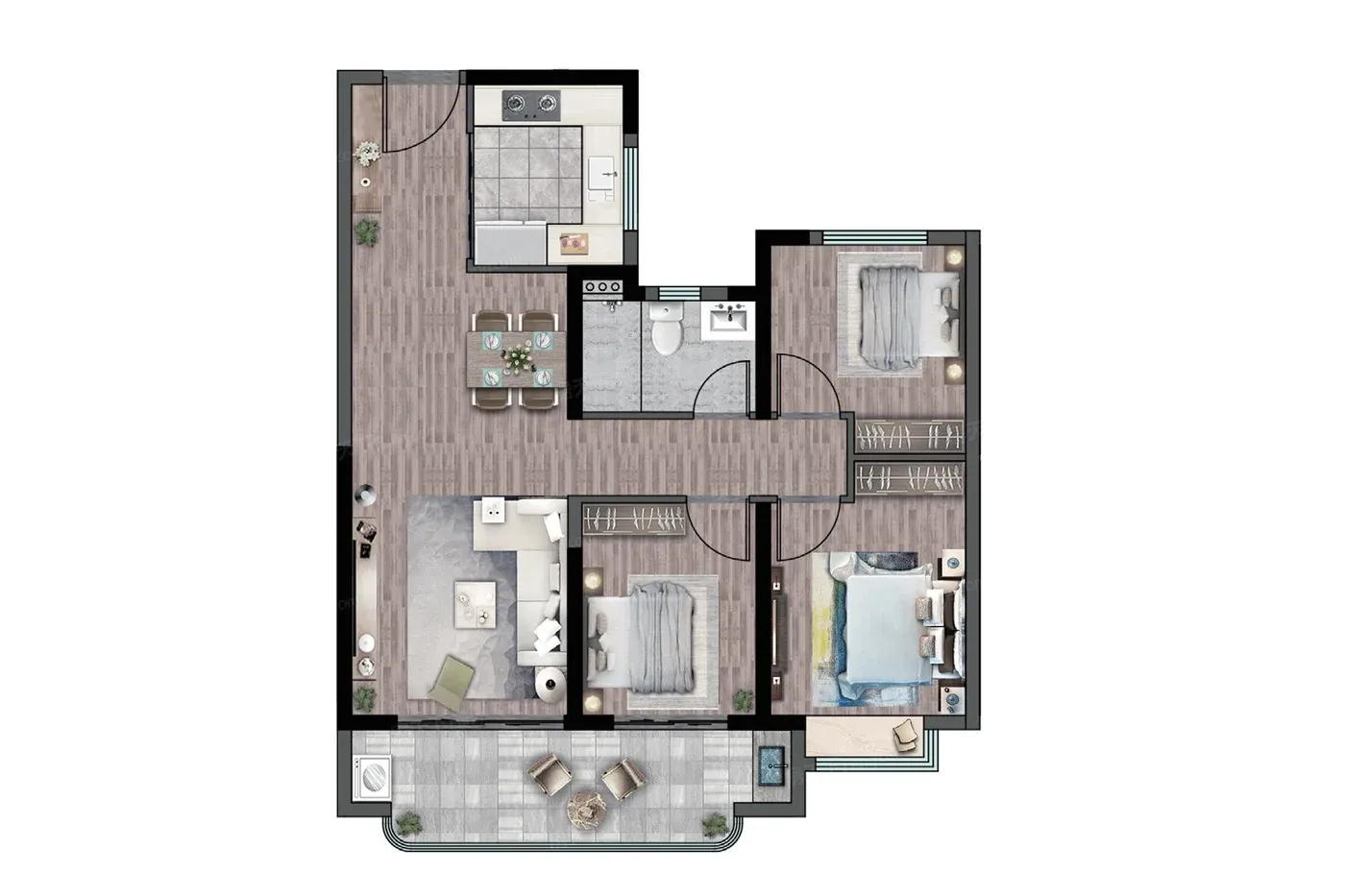 这里的设计师似乎很懂生活仪式感:300米风雨连廊贯穿社区,雨天不用打伞就能逛遍整个园区。精装细节更是戳中强迫症——卫浴清一色汉斯格雅花洒,厨房标配老板三件套,连地暖都用了菲斯曼这种德系老牌。最惊喜的是97㎡户型居然做到了三分离卫浴,这对养宠家庭太友好了!