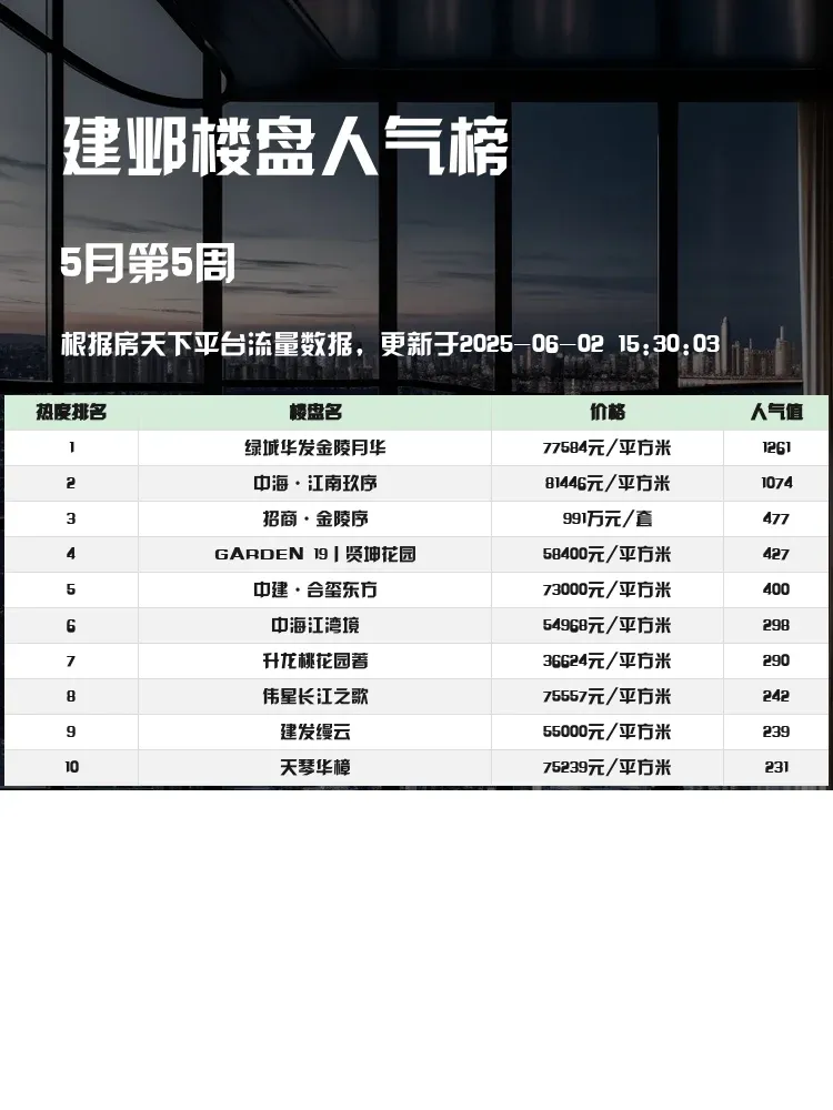 买房选对区域很重要,但选对楼盘更重要!建邺区作为南京高端住宅聚集地,这份人气榜单帮你快速锁定优质楼盘✨当前市场下,地段+品质+配套才是买房的核心逻辑,这份榜单里的楼盘都经过市场检验,值得收藏慢慢挑~