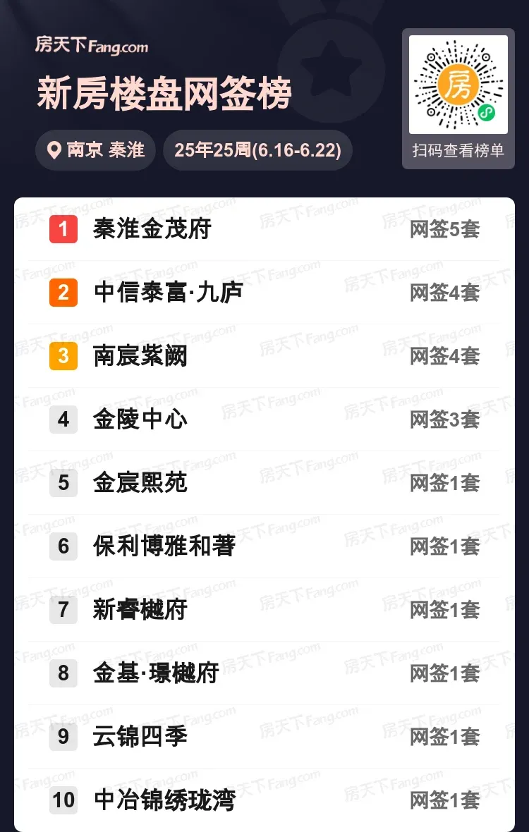 秦淮金茂府领跑!上周区域热盘榜单出炉