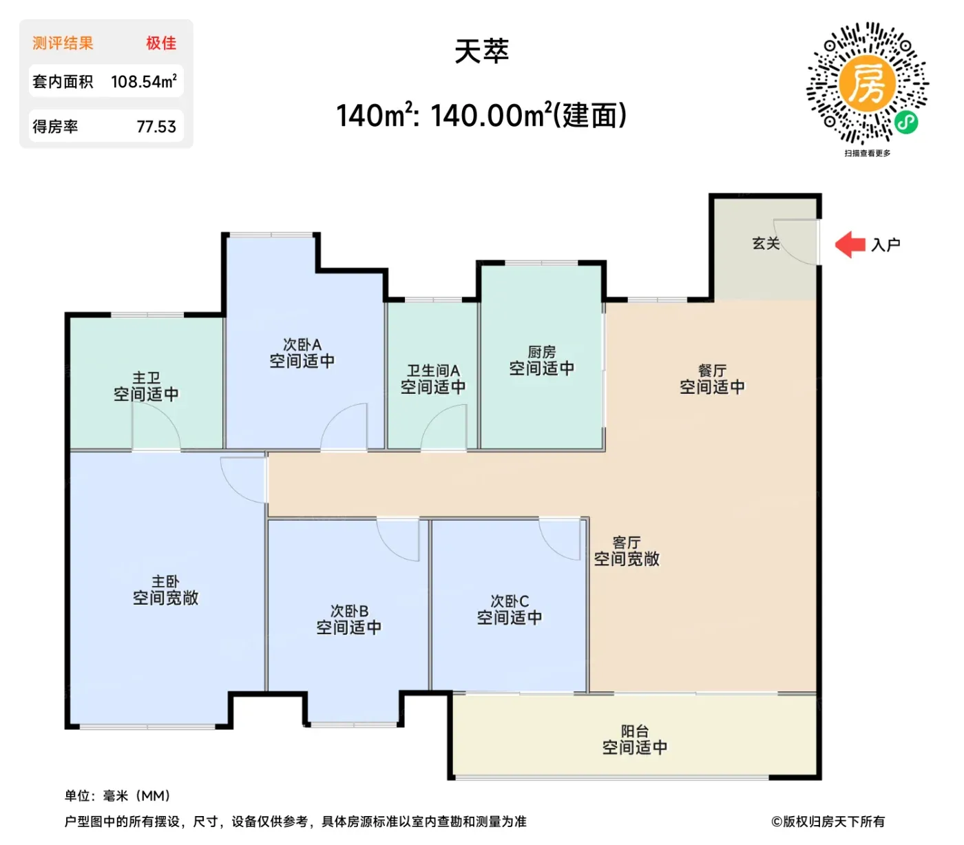 ❷ 108㎡户型塞进10米南向面宽,主卧套间+双卫配置,年轻人首改一步到位