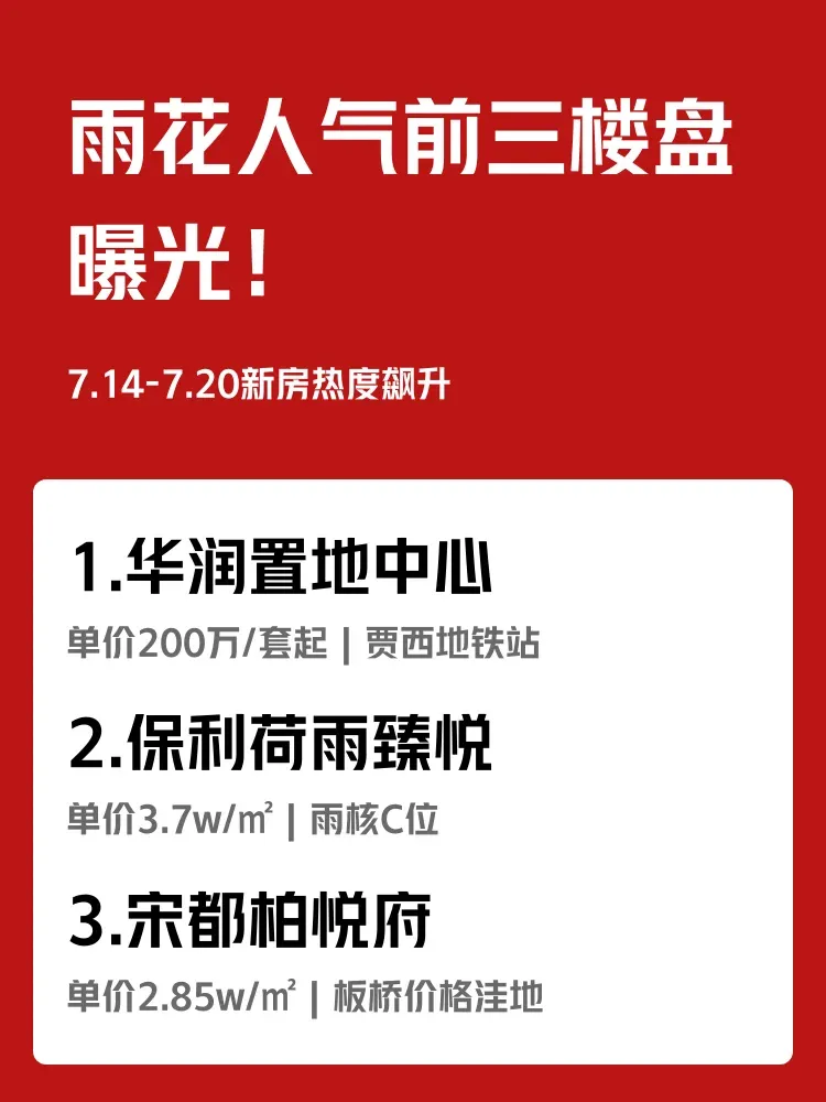 雨花区7.14-7.20新房热度飙升!每天通勤3小时🚇和家门口双地铁🚇,你会怎么选?来看人气前三的硬核数据对比——