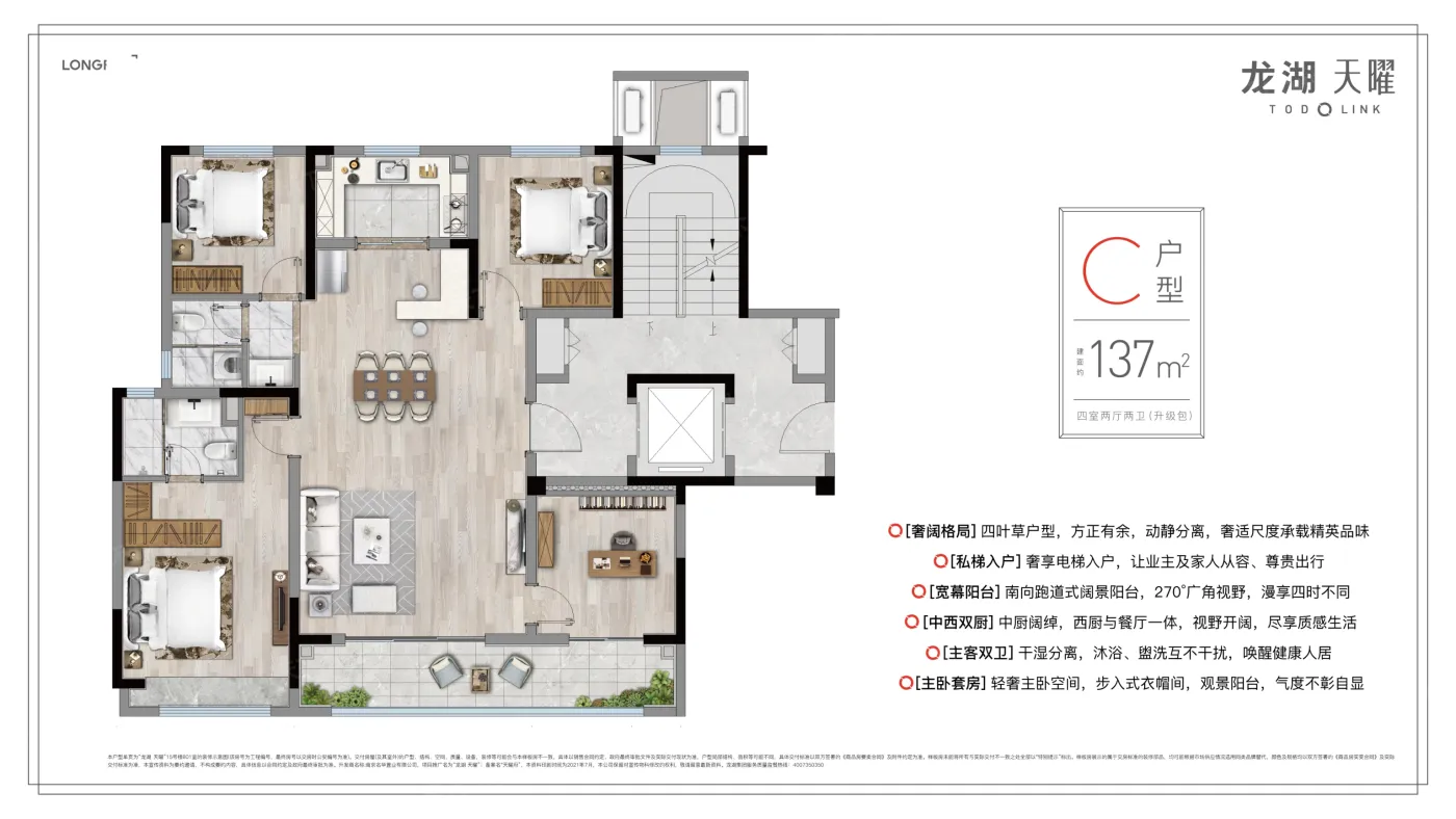 当龙湖天曜把3.5米超大飘窗做成标配,户型设计正在重新定义南京改善标准。实测发现137㎡户型飘窗进深达0.8米,足够摆下咖啡机+书籍收纳区,实现了从「观景台」到「生活场」的质变。更关键的是,项目1.8容积率下实现三重空间革新: