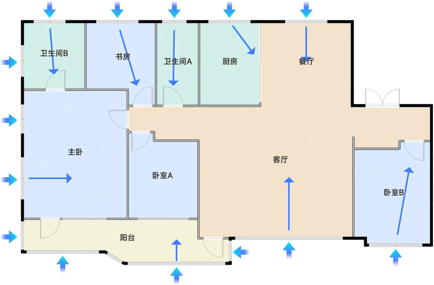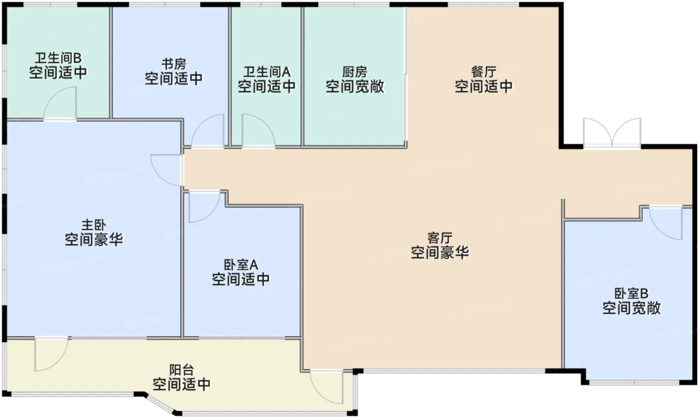 2️⃣三代同堂方案:154㎡户型L型推拉门实现中西厨切换,双台盆卫浴配270°采光,老人起夜不摸黑