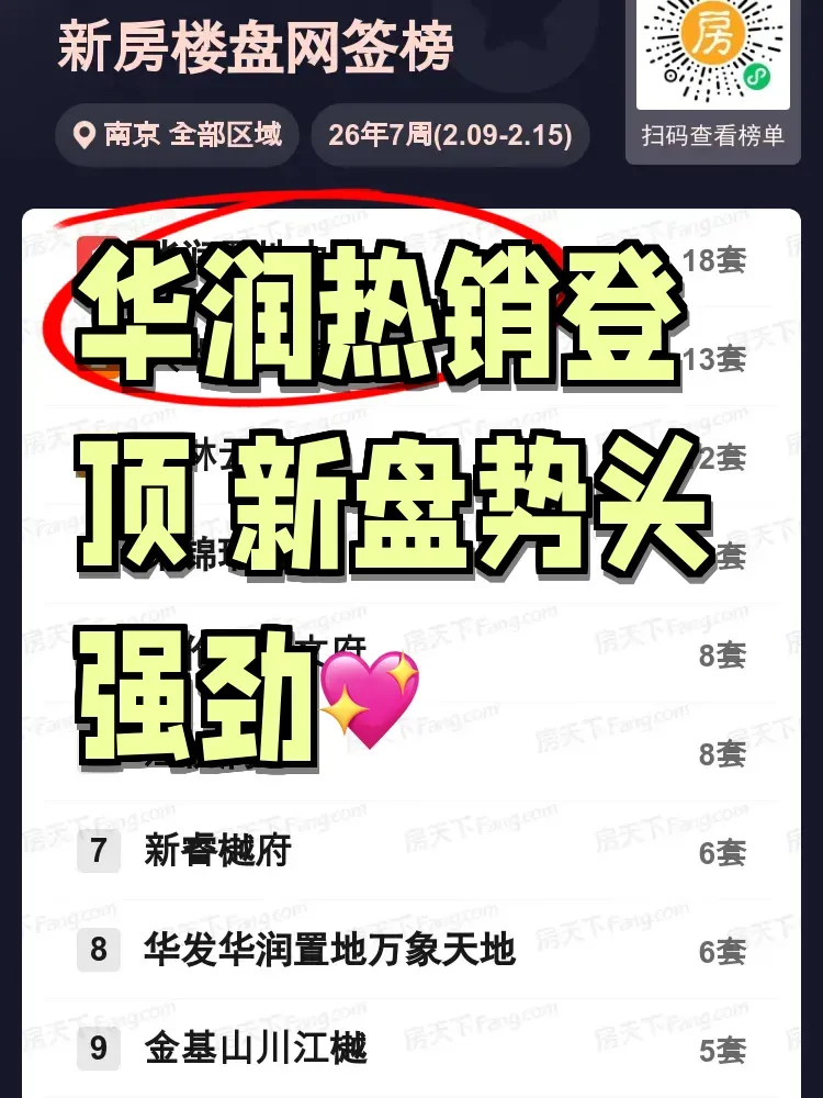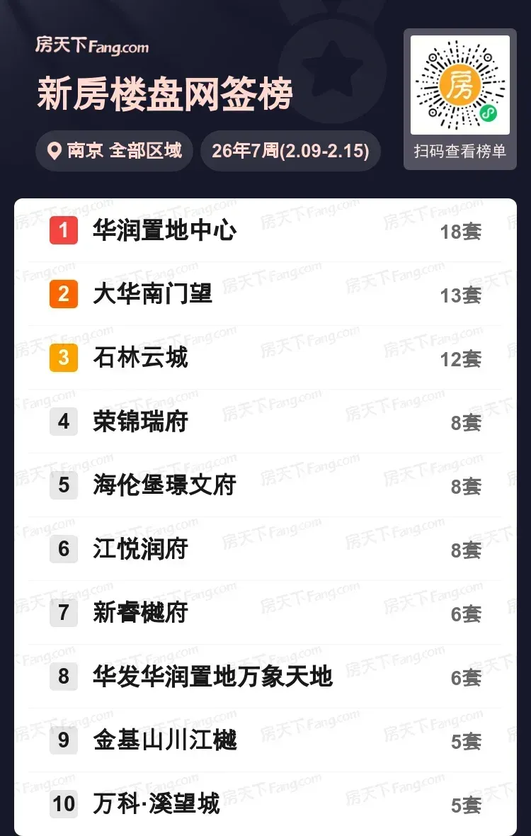 南京楼市上周成交数据新鲜出炉!华润置地中心以成交18套的成绩强势登顶,南部新城的大华南门望和石林云城分别以13套、12套紧随其后。值得关注的是,荣锦瑞府、海伦堡璟文府等楼盘均以8套成交量并列第四梯队。