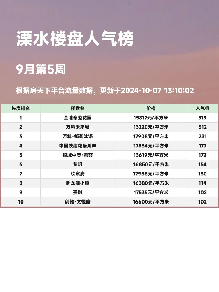 🏠 在当今的房产市场中,挑选一个适合自己的家可不是件容易的事。买房不仅是生活的需要,更是一种投资。因此,了解人气楼盘榜单能为购房者提供极具参考价值的信息。在溧水区域,哪些楼盘成为了购房者的热门选择?让我们一起来看看!