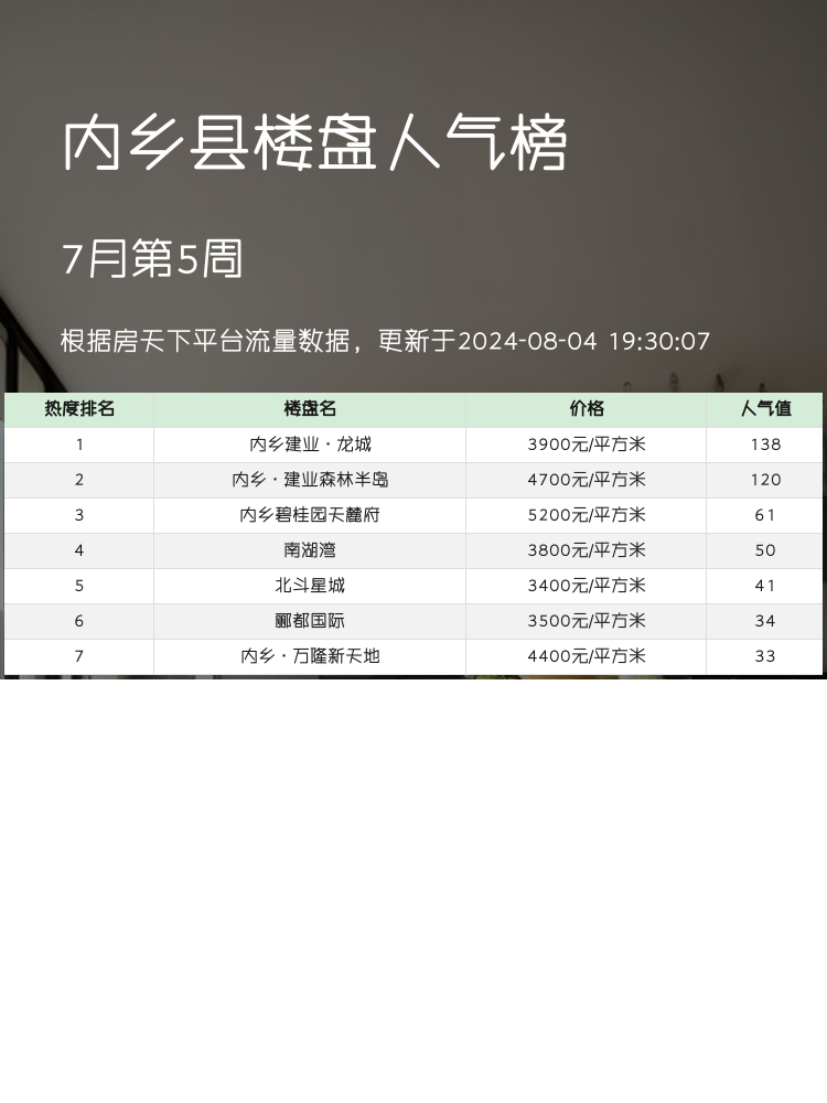 🏠 大家好,今天给大家分享一下内乡县的人气楼盘榜单!在当前市场环境下,买房选房不仅要看地段,还要考虑周边配套、交通便利性、教育资源等多方面因素。这次我们针对内乡县的热门楼盘进行了整理,为大家提供一些实用信息,帮助你们更好地做出选择。