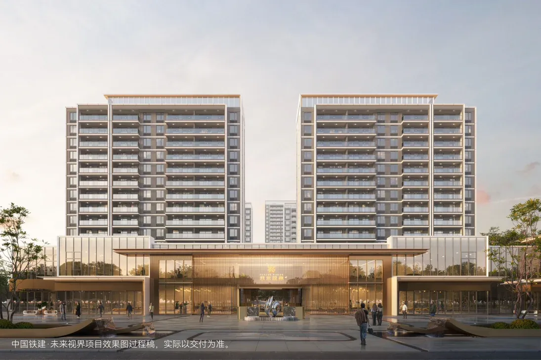 项目精奢大气的酒店式门庭,搭配璀璨雕塑与迎宾水景,衔接仪式场域的过渡空间,创造出一种尊贵的归家感受。穿过酒店式门庭则是迎宾水景步道,两旁植物组团结合流水缤纷,感受归家的悠然与安心。