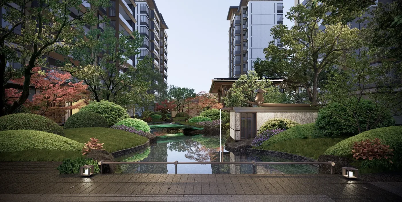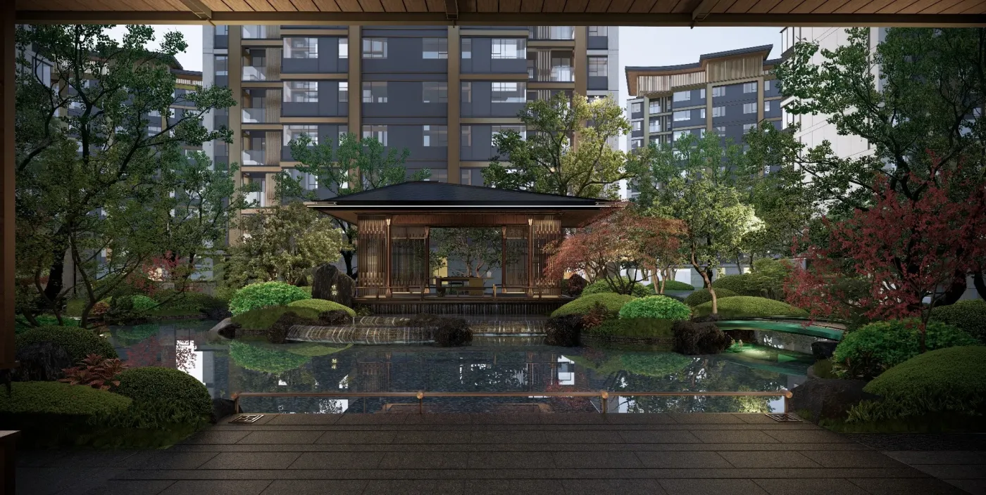 西区中式园林效果图,园林面积 6200 平方,真美