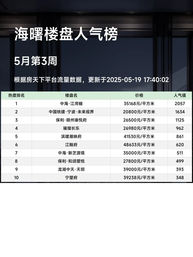 买房不看榜单=盲选!🔥当前市场下,地段+配套+价格缺一不可,这份海曙区真实热度排名,帮你过滤营销泡沫,直击核心价值!数据说话,拒绝踩雷~👇