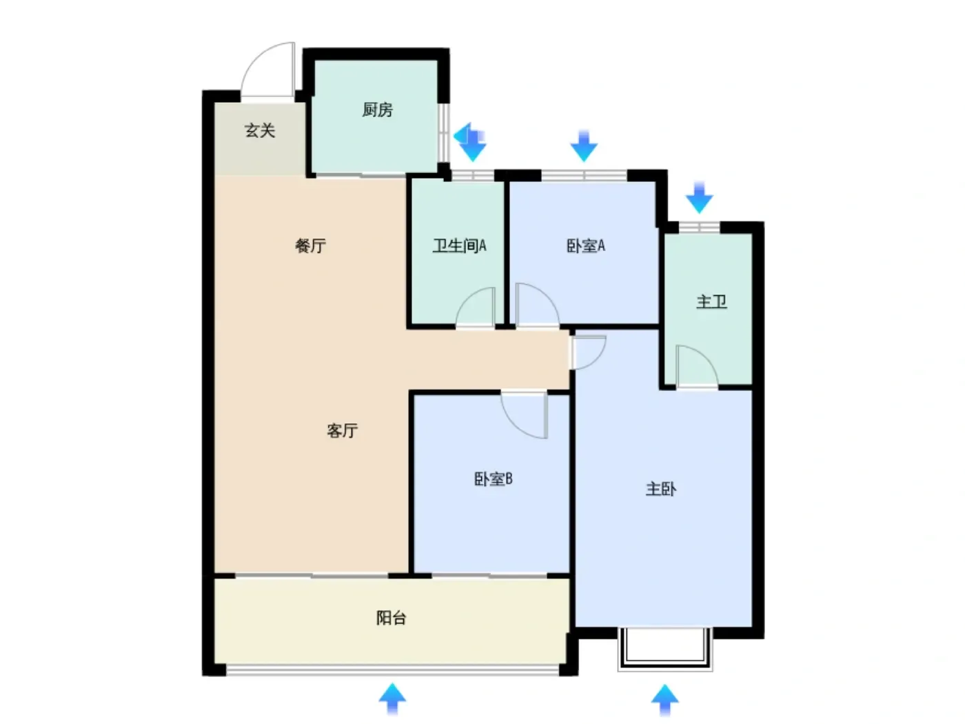 不过阳台赠送面积倒是惊喜,主卧L型转角窗看出去没有遮挡。周边在建的福明未来城规划了3宗商住地块,五年后这里可能会长出新的城市界面。