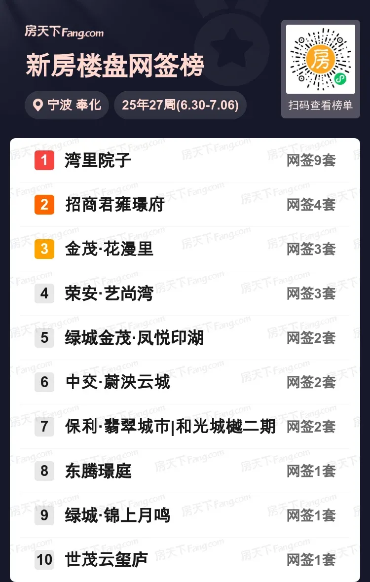 上周奉化楼市看点十足,湾里院子9套成交领跑市场,成为改善客群心头好。招商君雍璟府以4套紧随其后,第三梯队金茂·花漫里、荣安·艺尚湾双双斩获3套。从成交分布看,带院墅产品项目更受青睐,凤悦印湖、蔚泱云城等品质项目均有稳定去化。值得关注的是,板块轨道交通配套升级在即,预计下半年改善型产品成交占比将持续走高。评论区聊聊,你觉得哪些配套能提升居住幸福感?@好友一起来看房