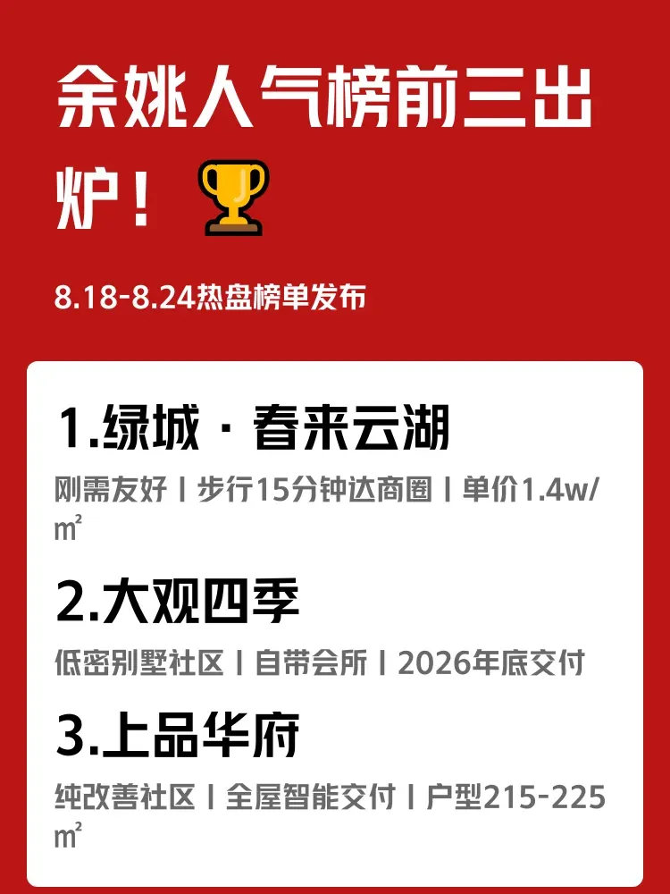 上周(8.18-8.24)余姚新房热度爆表🔥 打工人的终极选择题:月供透支30年 vs 半小时生活圈自由,哪个更香?