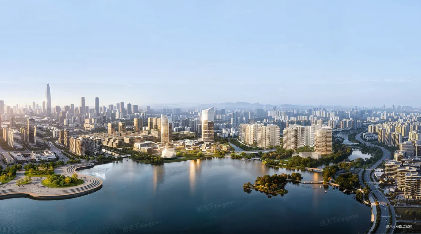 项目位于宁波明湖高能级居住板块。项目三面环水,正南一线面湖,坐拥1500亩生态长廊与26公顷明湖水域双生态资源,畅享深度融合艺术、商业、生活的世界级滨湖板块生活。