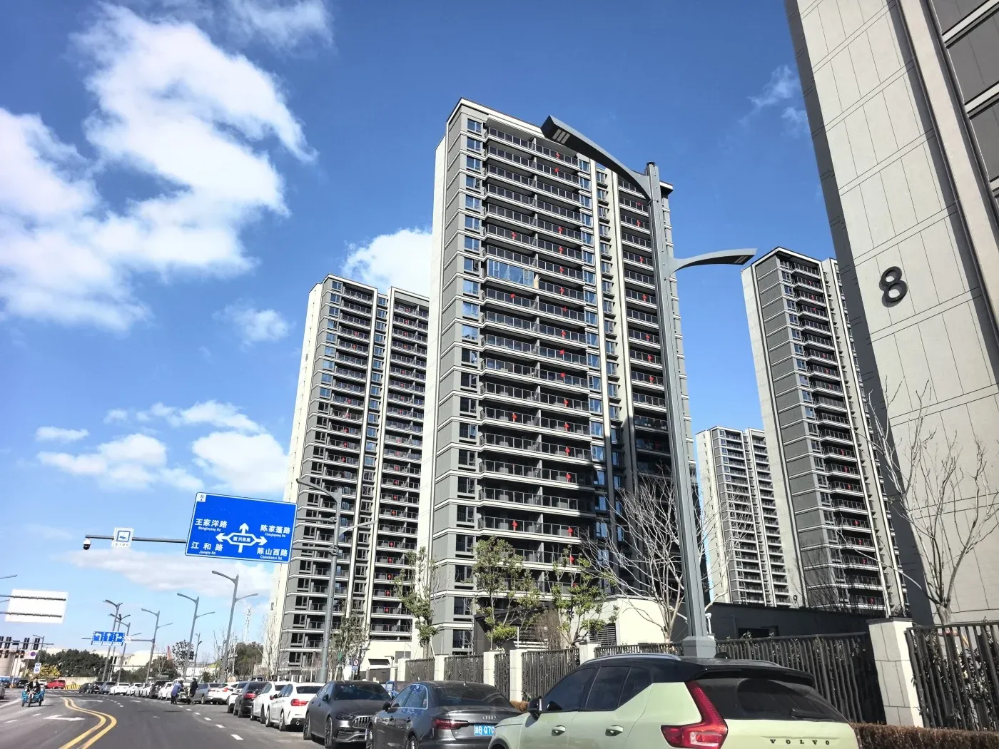 今天实地探访了北仑区的滨江天街 | 江与城项目!🌆现场实拍了实景竣工楼栋图片,楼盘位于江南路与经六路交叉口,属地铁沿线项目🚇,目前多栋楼正在建设中。开发商华盈置业联合龙湖智创生活打造,毛坯与带装修房源同步供应。