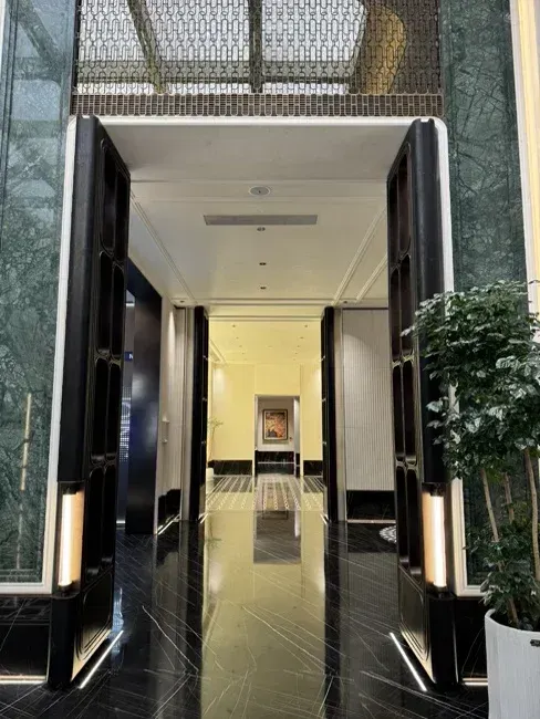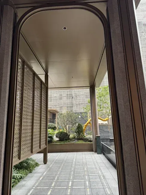 双归家大堂+风雨连廊,全天候舒适归家;酒店式门庭配叠水雕塑、石景墙,仪式感拉满。