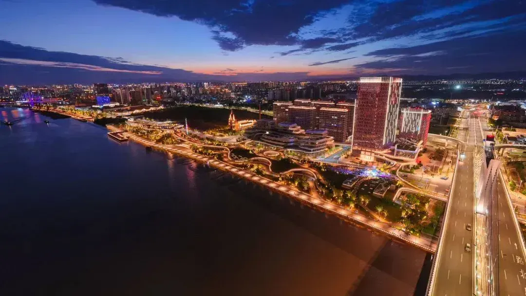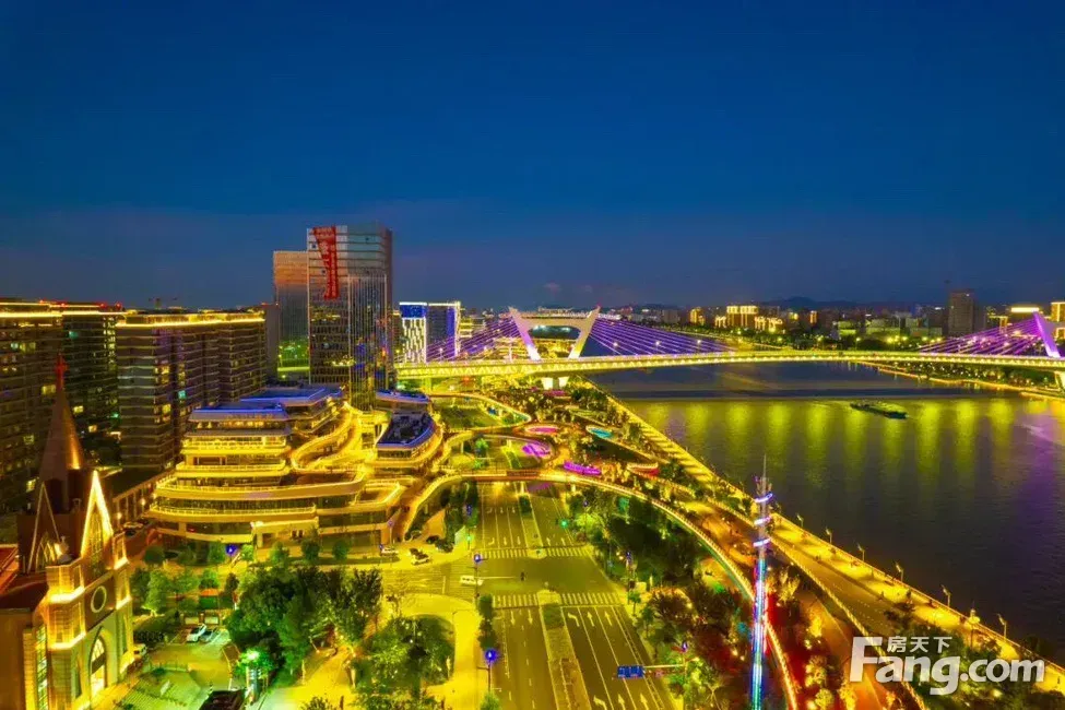 甬江北岸,滨江公园夜景。