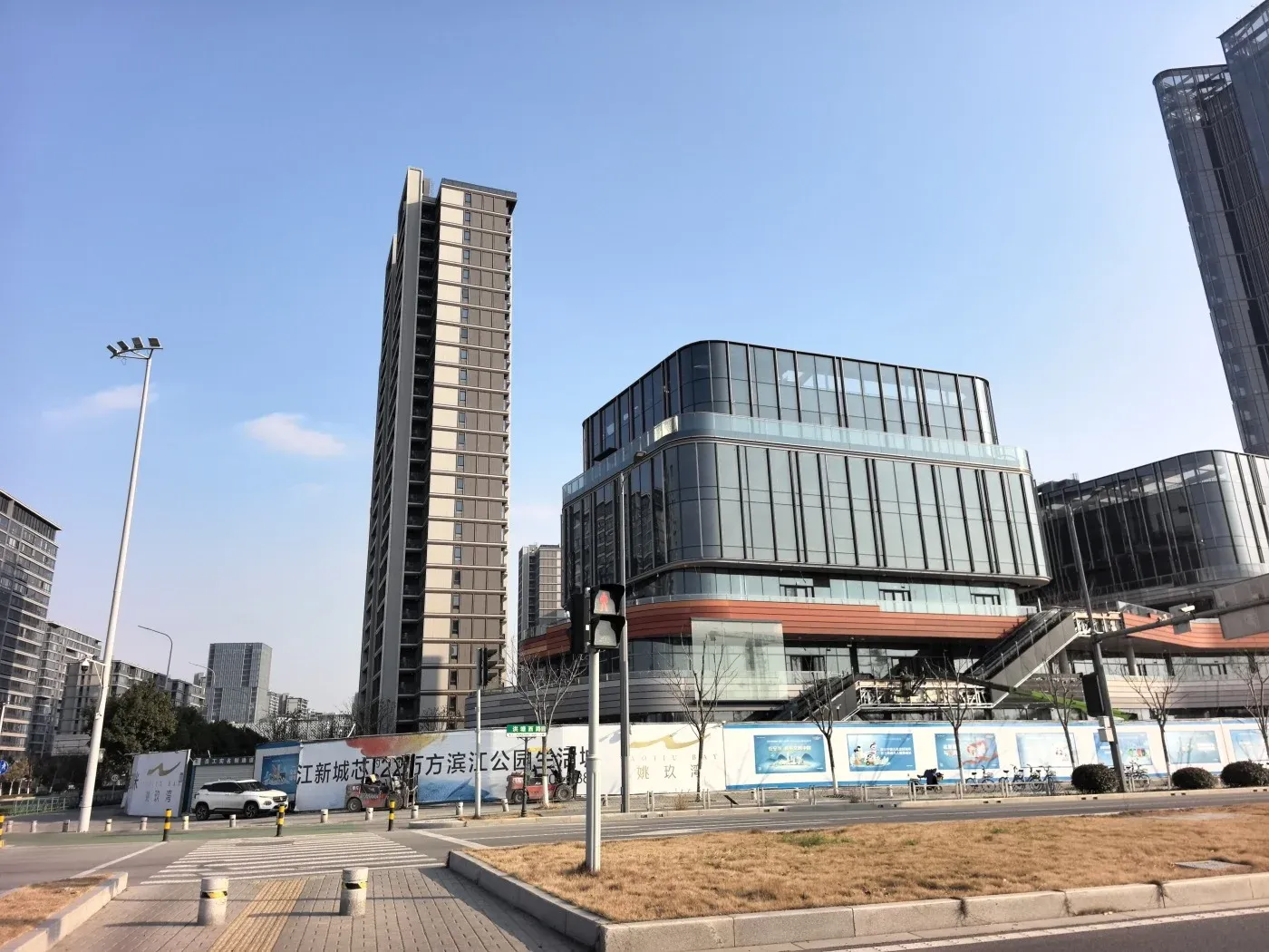 今天顶着大太阳来云飞路实探姚玖湾啦🌞!项目就在洪塘西路交汇处,现场看到工地已大部分完工,随手拍了几张新曝光的江景视角图🌉!作为宁波开投开发的70年产权住宅,主打「国际化社区+精装交付」概念,板塔结合的建筑外立面现代感十足💯~