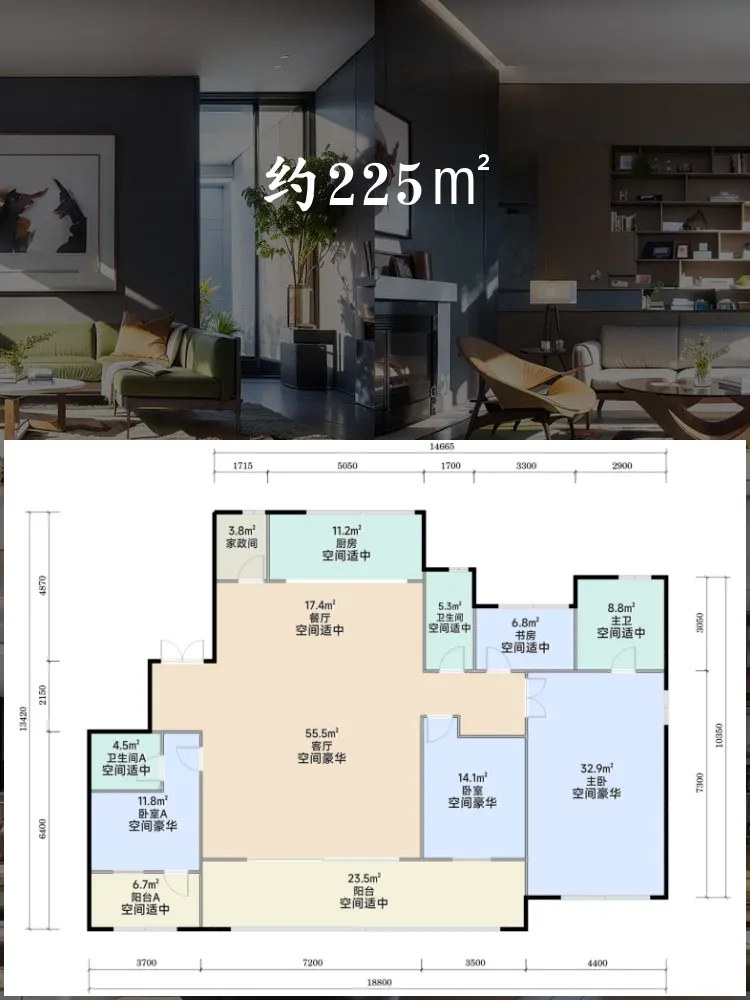 沧海路与樟树街交汇处的得力·臻元府,单价44732元/㎡起跳,定位高端改善住宅🏡 项目近期新推225㎡和289㎡两个稀缺大户型,尤其五居室户型引发市场热议🔥 今天带大家深度解析四大主力户型的空间密码!